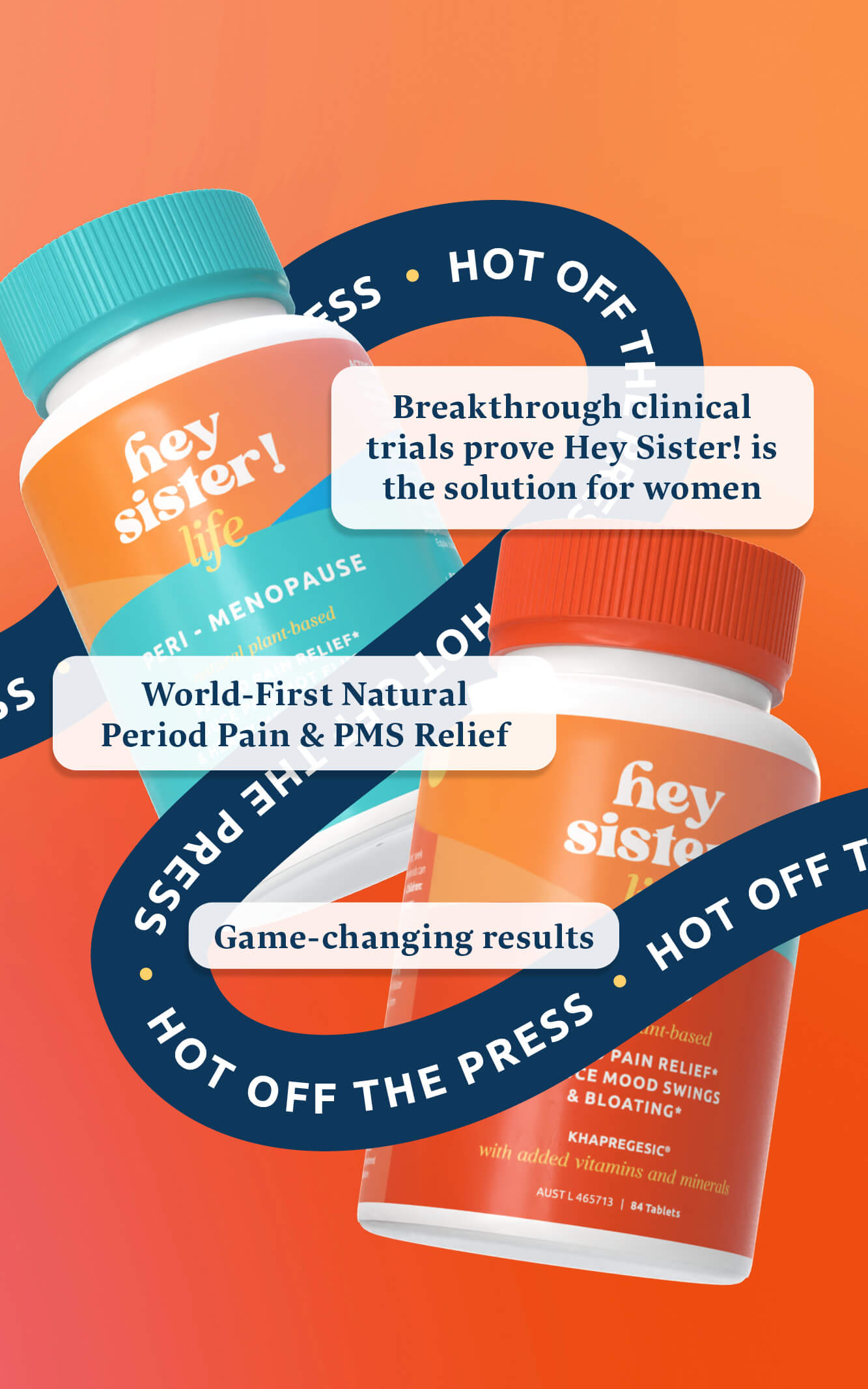 HEY Sister! is a clinically-proven, dual-action, oral therapy designed to relieve period pain and PMS symptoms.