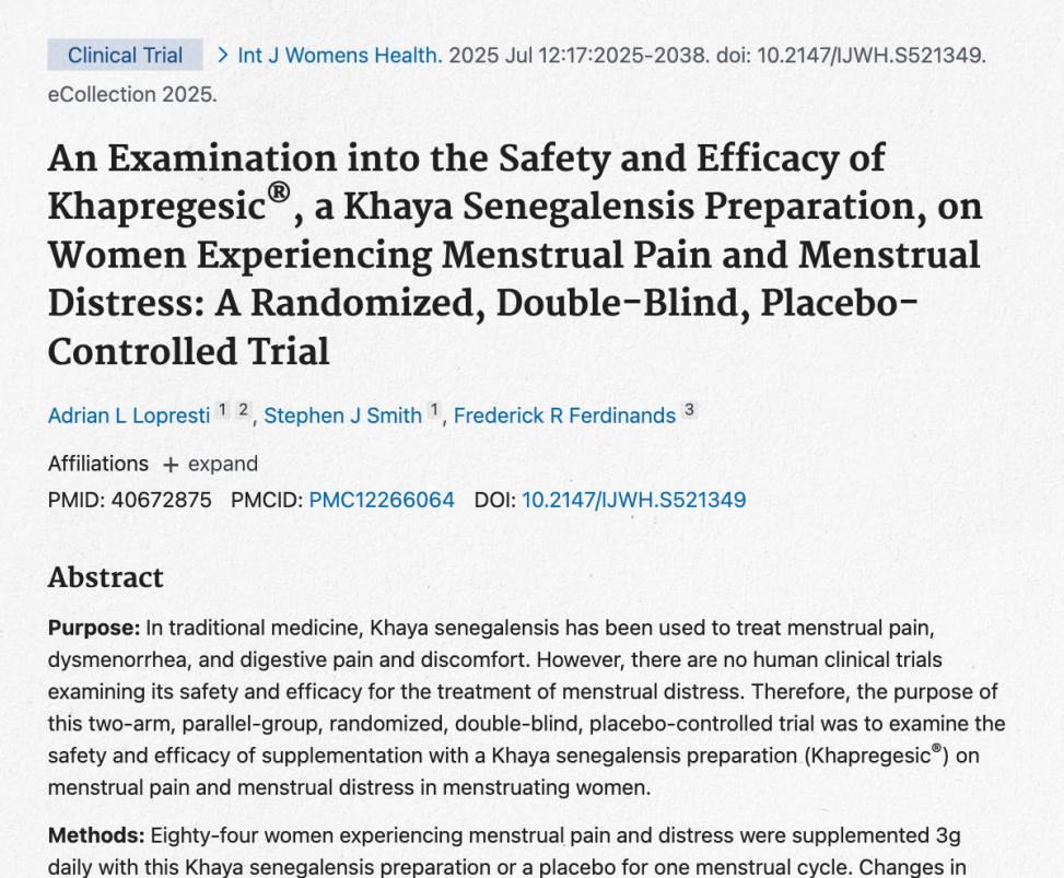 New published data supports the dual action efficacy of the oral, plant-based formulation Khapregesic® , derived from the Khaya senegalensis tree, for treating menstrual pain, and premenstrual synd...