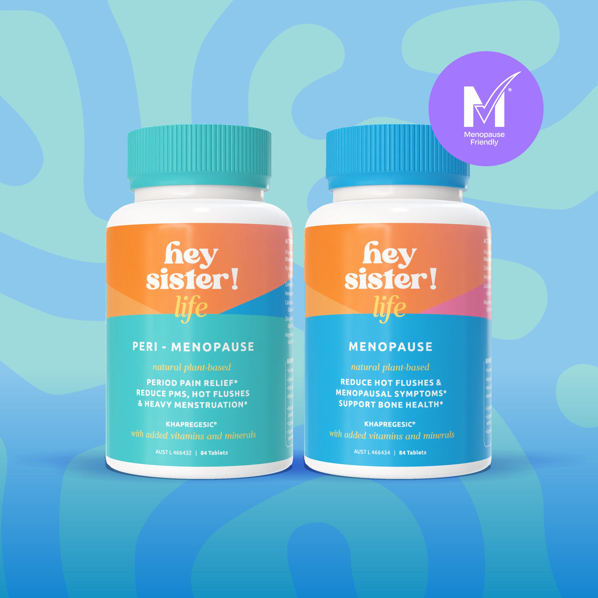 Hey Sister! is grounded in over 12 years of research and insight into women’s health. That depth of understanding shapes every decision we make, from the products we create to the partners we choose, to how we show up for women navigating perimenopause and menopause.