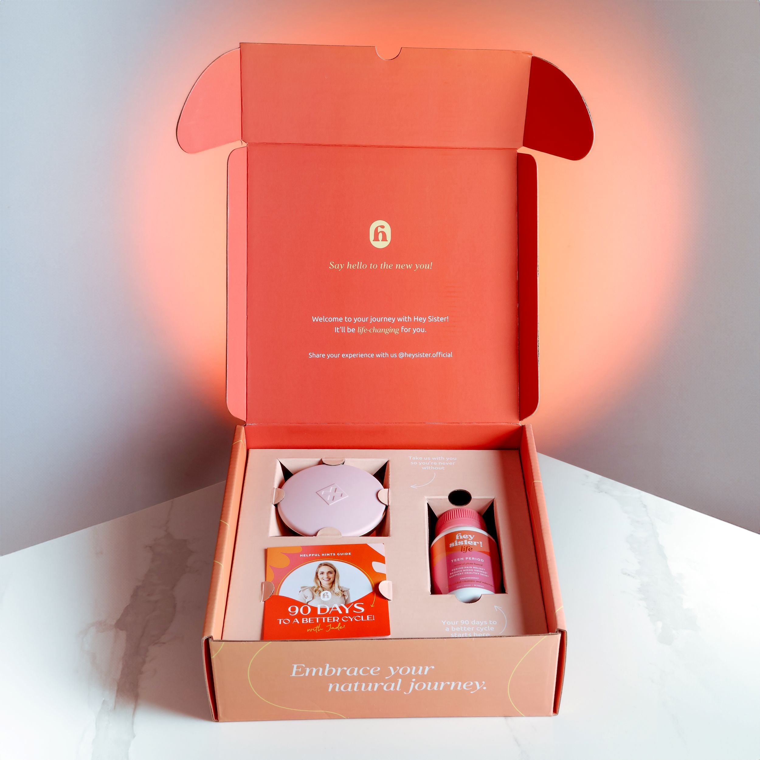 Achieve long-lasting period comfort with the Hey Sister! 90-Day Starter Pack. Designed to provide comprehensive support over three months, this pack combines the benefits of Hey Sister!’s natural formula with essential tools and expert guidance to help you achieve a more balanced and comfortable cycle.