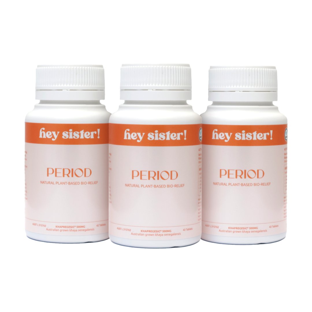 Tired of period pain cramping your style? Now you can stock up on the natural comfort you deserve with Hey Sister!'s new 9-Month Supply – a hassle-free, long-lasting option that keeps your cycle smooth and steady.